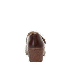 Mary Janes have matured in this grown-up leather version featuring a featherweight slip-resistant wood-look wedge bottom. Dressing it up is an adjustable hook-and-loop close strap with a decorative metal ornament. A printed microsuede-lined footbed made of polyurethane, cork and memory foam.