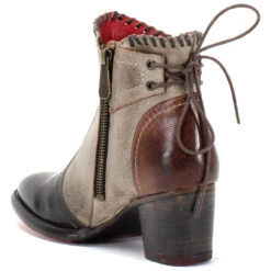 Handcrafted with vegetable tanned leather, BIA features micro-perforation detail on the shaft, a beautiful decorative front, whipstitch edges, feminine back lacing, and an easy-on side zipper. With a 2.5″ heel.