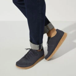 Introducing the BIRKENSTOCK Honnef, the newest street smart shoe engineered completely around the new Deep Blue footbed. The four part footbed includes a moisture wicking microfiber liner, cork and jute layers for optimum arch support and a PU base for added shock absorption and forefoot cushioning. The sporty lace up style is perfect for your most active days whether that’s all day around town or on your next travel adventure.