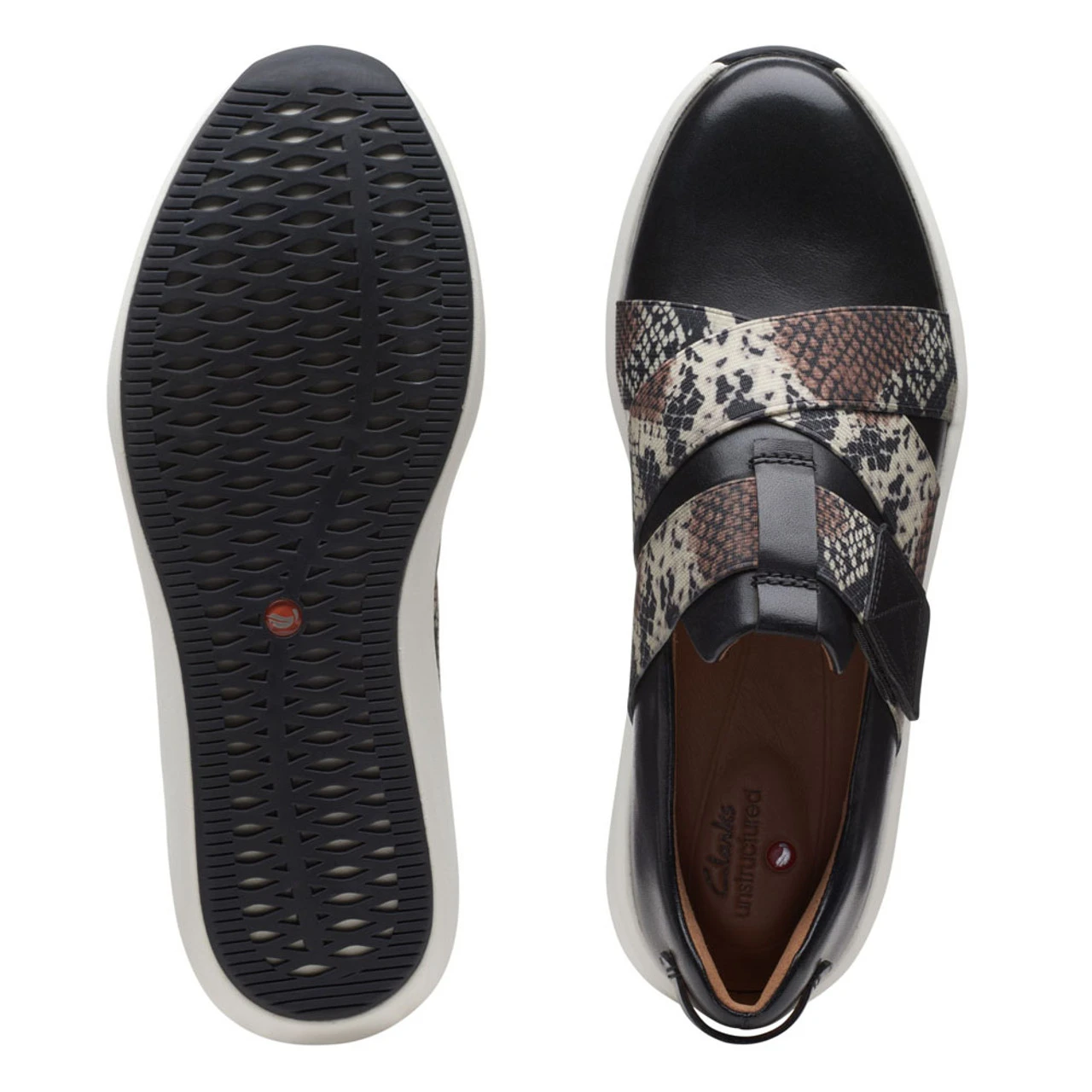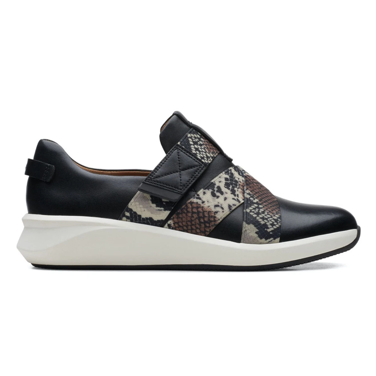 A smart wedge sneaker with versatile appeal, the Clarks Un Rio Strap Sneaker offers an arch-support OrthoLite® footbed, EVA midsole, and breathable leather upper and lining for all-day comfort.