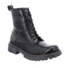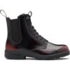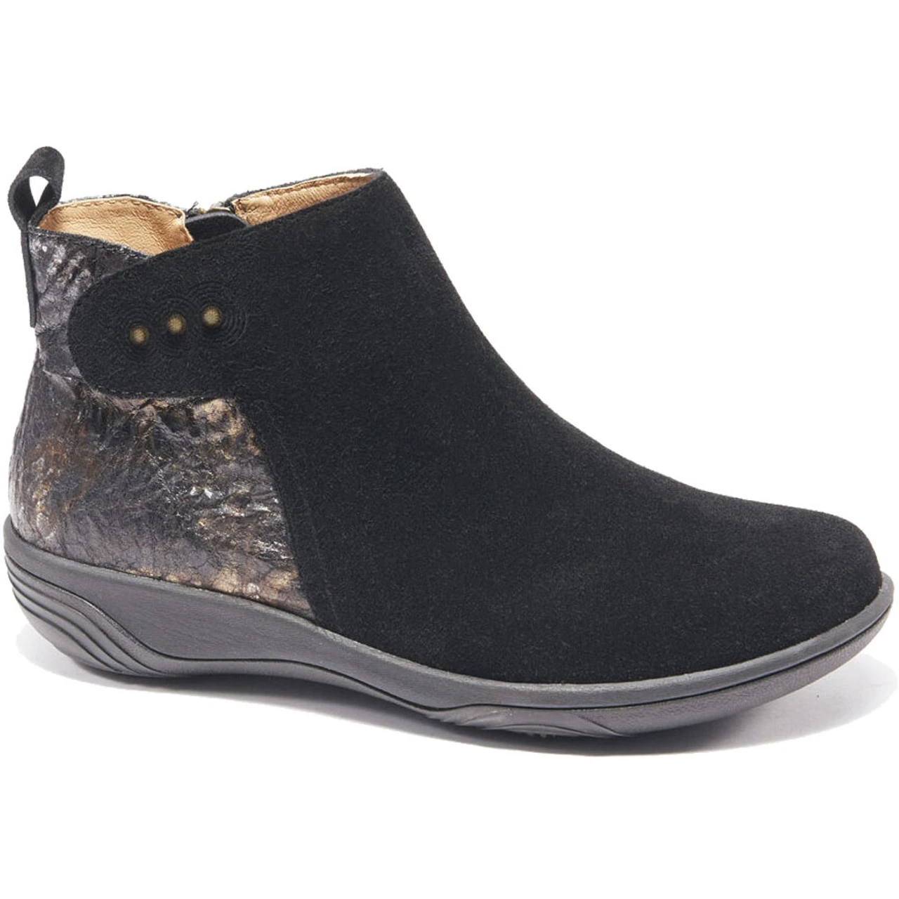 Floral tooling at the counter brings an artisanal look to a round-toe bootie made with an anatomical Equilibrium Plus insole to ensure proper foot alignment.
