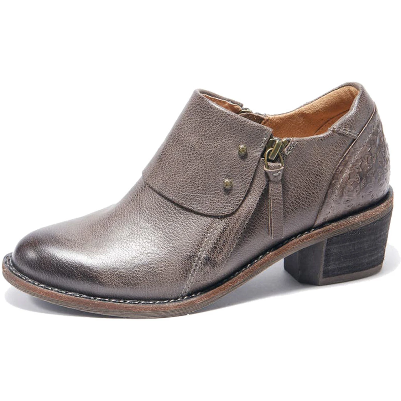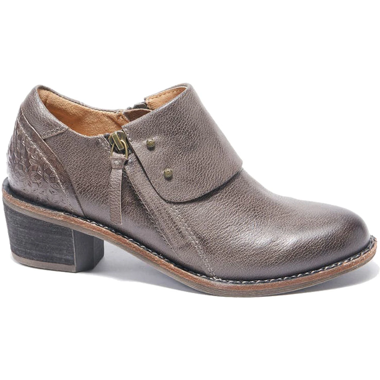 Romantic flowers detail the heel of this beautiful leather boot with decorative goldtone studs and a tree-shaped tread. The lightweight and flexible midsole provides ample support, while the antimicrobial lining means a fresh fit every time.