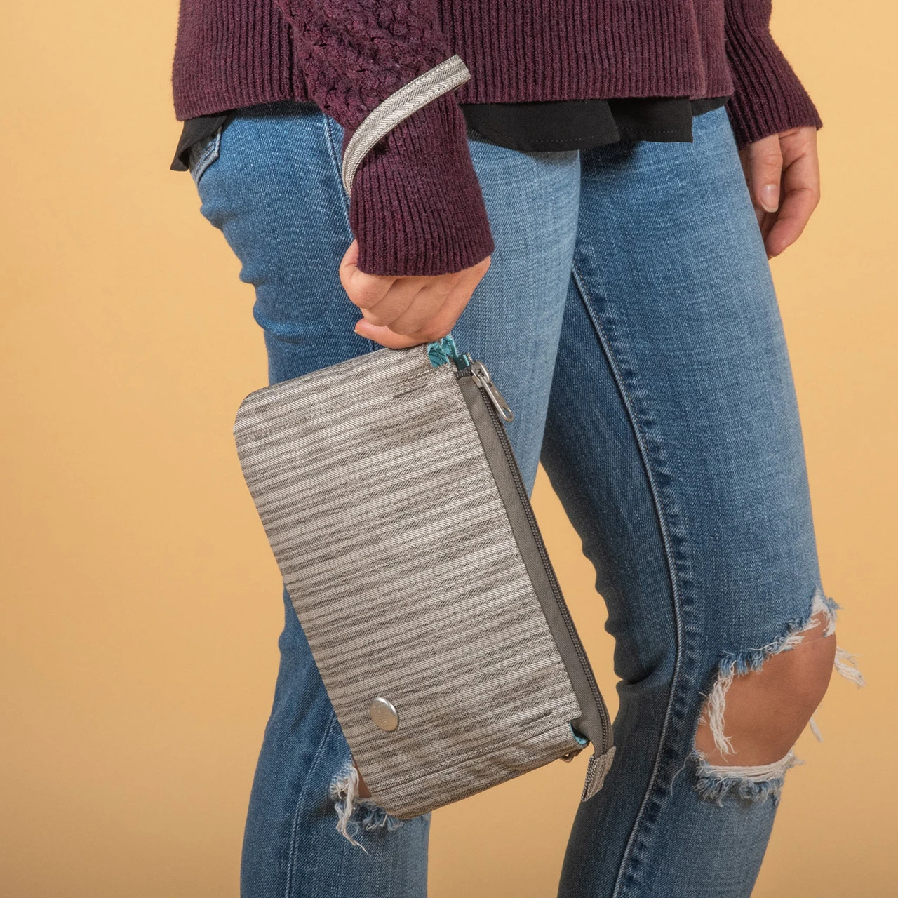 The small but mighty Stride Wristlet carries all your essentials and then some. It features two main accordion-style compartments, multiple pockets, and an adjustable strap for hands-free travel.