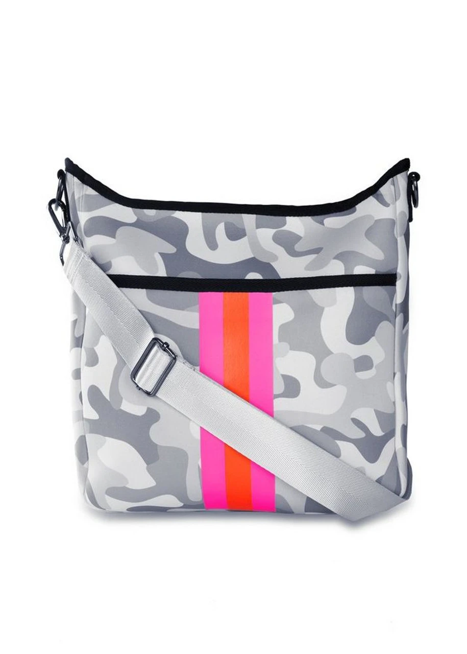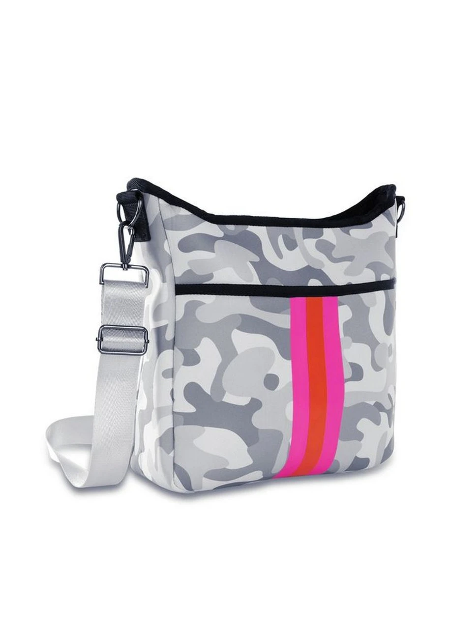 Crossbody at it’s best! Perfect to use everyday! Fits just the right amount of stuff plus a zippered front pocket to store valuables. The neoprene body of the bag is lightweight and easy to clean.