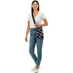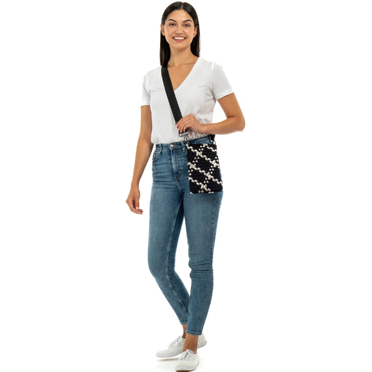 Cell phone bag featuring lined interior, slip pocket and magnetic closure.