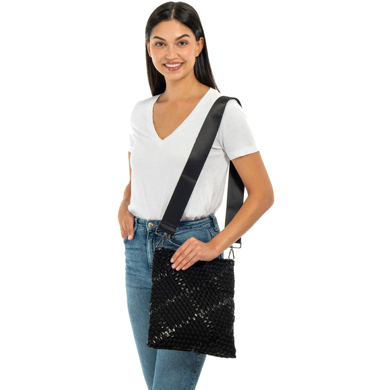 Ultra versatile bag worn as a crossbody or fold over clutch.