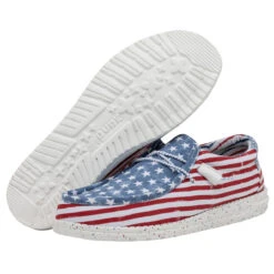 The Wally Patriotic is your all-American go-to. The cotton-canvas upper and lining are all oh-so breathable, durable and BBQ-ready. The foam insole is for do-everything, warm-weather seasons. Featuring a flexible, lightweight outsole with no-tie, elastic laces that adds just another HEYDUDE feature you love and finished off with a cushioned ankle collar for never ending comfort.