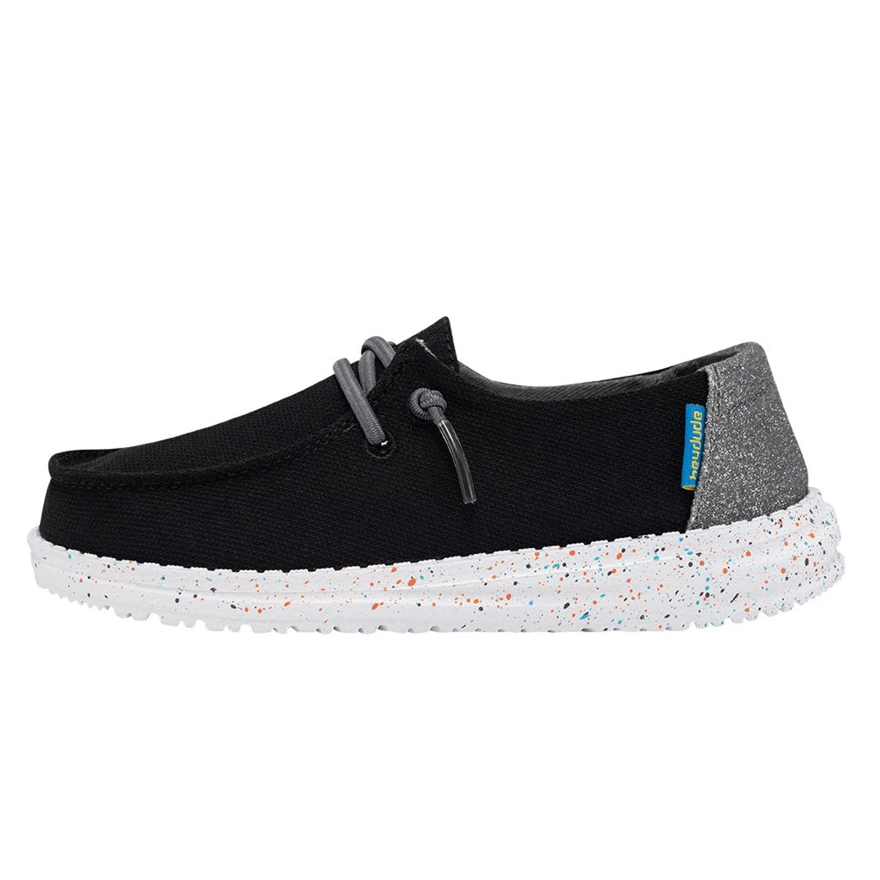 Wendy features elastic laces that keep these ‘lil dudes securely on. Low top slip on style is both cute and functional. Aerated memory foam insole is breathable and they are easy to wash – just remove the insole and toss in the washing machine on cold.