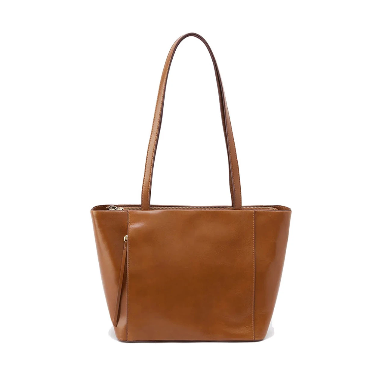 Haven has a top zip closure and plenty of room for your belongings. Crafted in Polished Leather: Vintage Hide; full-grain Italian leather, hand-selected and finished with a high-gloss shine that wears to a rich patina.