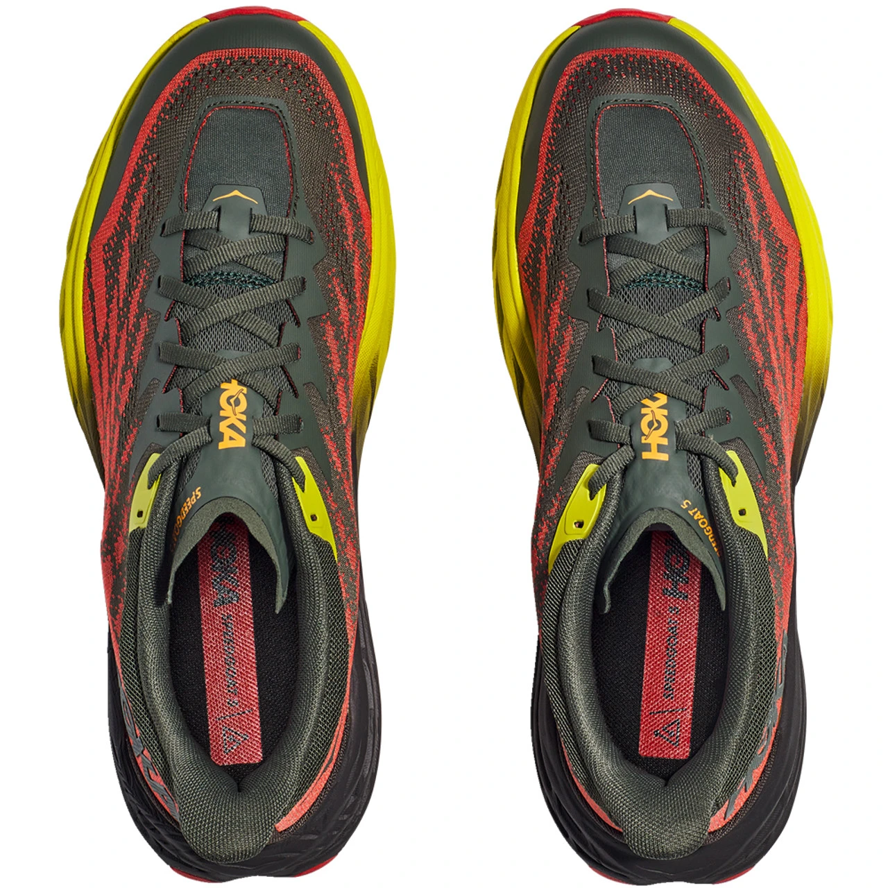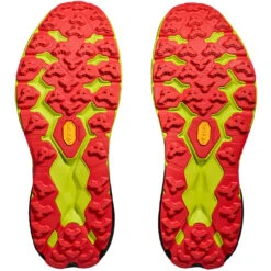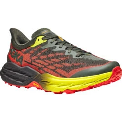 A workhorse designed for technical trails, the Speedgoat returns with less weight and more traction than ever before. Updated with Vibram Megagrip with Traction Lug for enhanced grip on loose soil. Retaining the same stack height and rocker profile, the Speedgoat 5 employs a lighter midsole compound and heartier, double layer jacquard mesh to inspire confidence on any terrain.