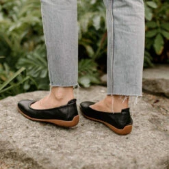 These slip-on ballet-style flat are bound to be lighter than most but the real revelation is its extraordinary comfort. Made from super supple, high-quality leather allows for elasticity that contours to the foot. Sitting atop a rubber sole offers robustness given its flexibility.