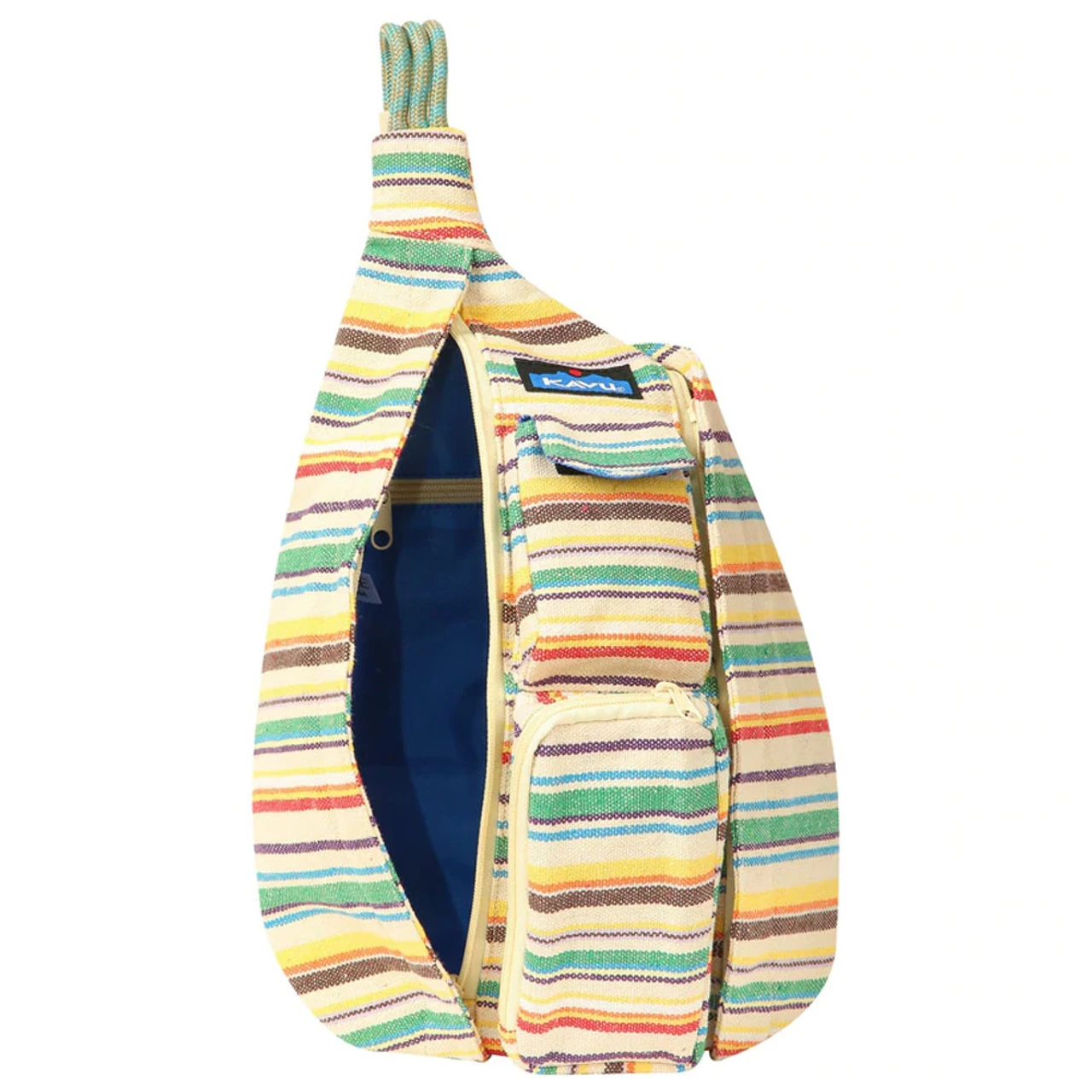 The Mini Interwoven Rope Bag has all the features you love about KAVU’s classic Mini Rope Bag style – in a beautiful polyester blend woven fabric that will elevate your rope bag game to a whole new level. Features an adjustable rope shoulder strap, two vertical zip compartments, two key or cell phone pockets, padded back with KAVU embroidery.