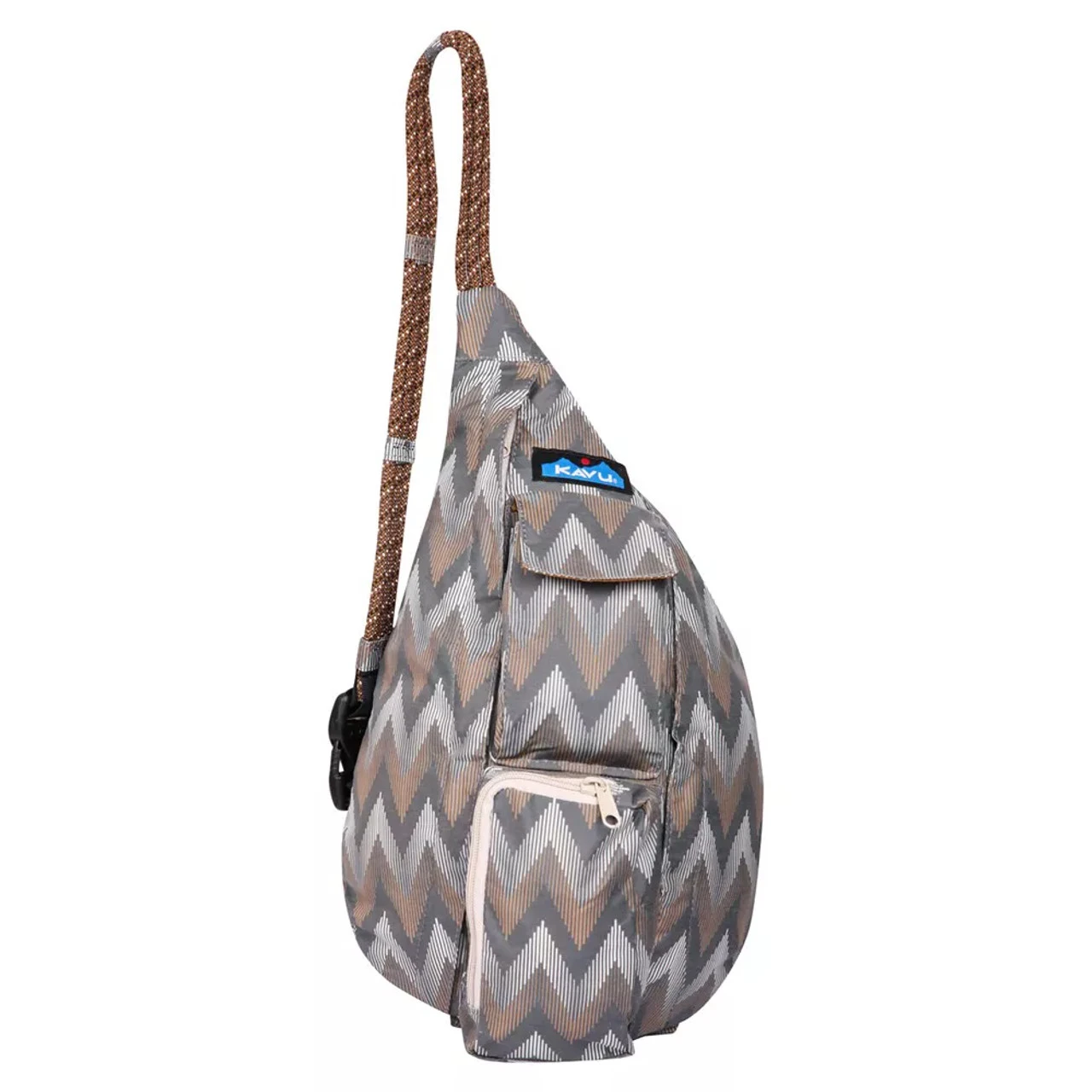 Packed with the same features as your classic Mini Rope Bag, but in a new 5oz 100% nylon taslan. A mini sling pack with adjustable rope shoulder strap, two vertical zip compartments, two key or cell phone pockets, padded back with KAVU embroidery.