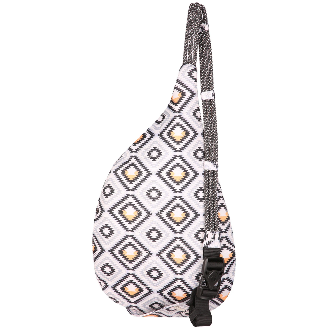 - This polyester mini sling pack features an adjustable rope shoulder strap and side release buckle, two vertical zip compartments, two key or cell phone pockets, padded back with KAVU embroidery.