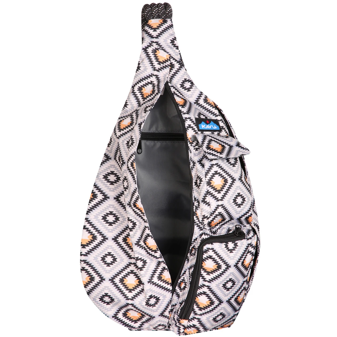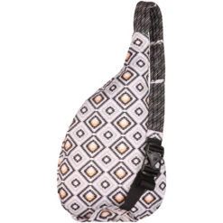 It also has an ultra-comfortable adjustable rope shoulder strap with side release buckle, two vertical zip compartments, two key or cell phone pockets, and a padded back with KAVU embroidery.