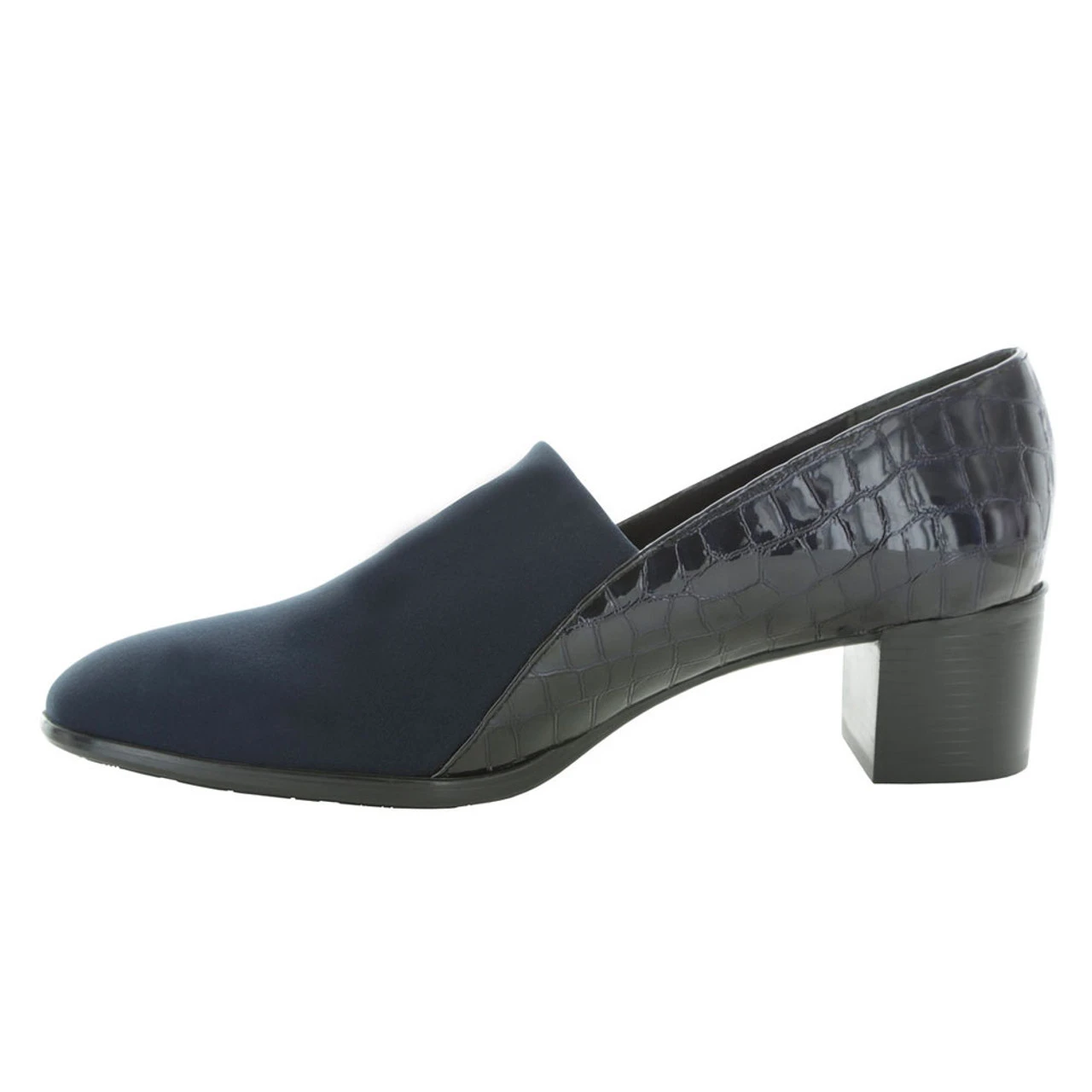 The women’s Billee heel by Munro features a stretch fabric, a croco print leather upper, and a latex rubber outsole. This style is effortless and chic and will pair beautifully with all of your fall looks.