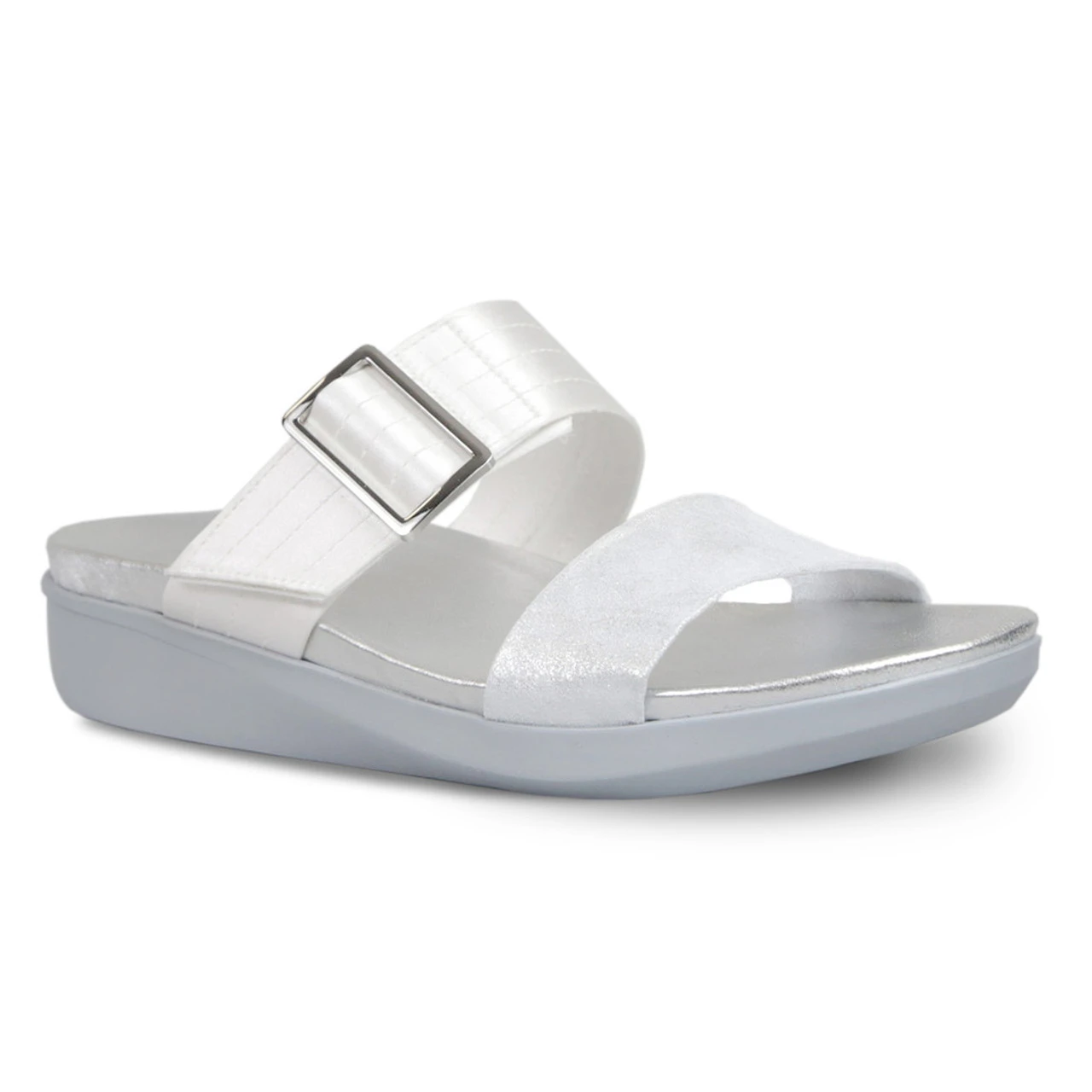 Slide into comfort and fashion with the Cameron from Munro! This functional sandal features soft, adjustable leather uppers, a sophisticated .5″ wedge, and is assembled in the USA.