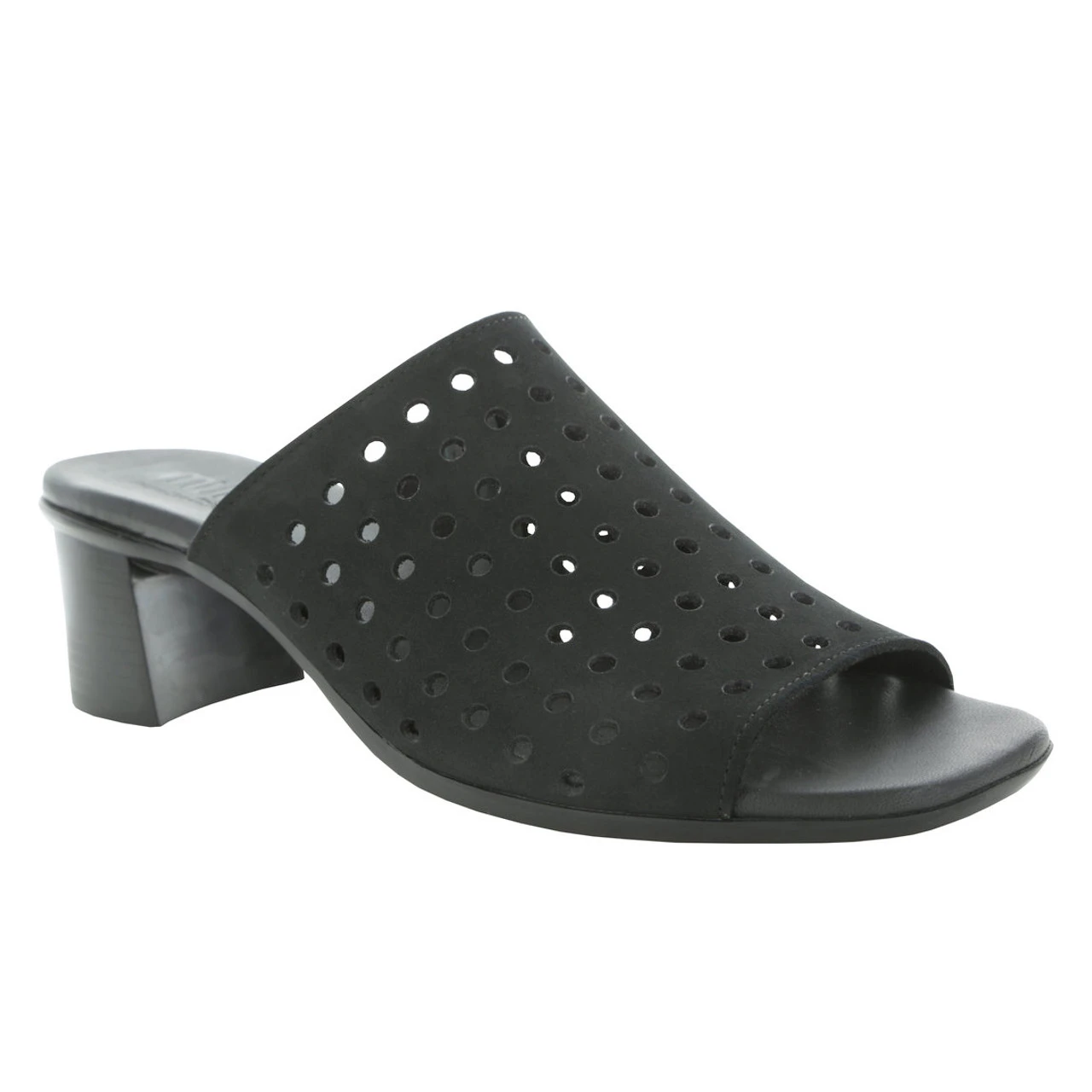 Slip into the Jules sandal and get on with your day! This stylish slip-on features a perforated, nubuck upper and 1.75″ heel height.