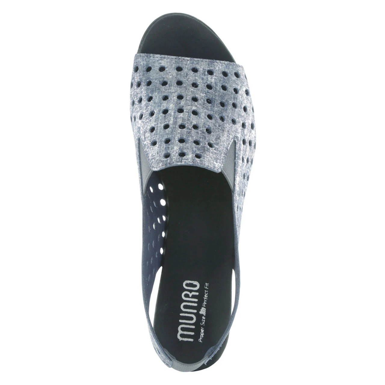 Take on summer in the unique Mickee sandal from Munro! This classic slingback style features luxurious nubuck uppers and a chunky, 1″ Cuban heel that make this style very wearable.