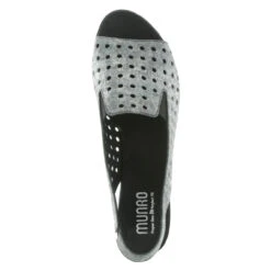 Take on summer in the unique Mickee sandal from Munro! This classic slingback style features luxurious nubuck uppers and a chunky, 1″ Cuban heel that make this sandal very wearable.