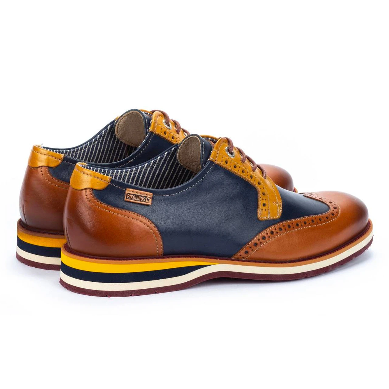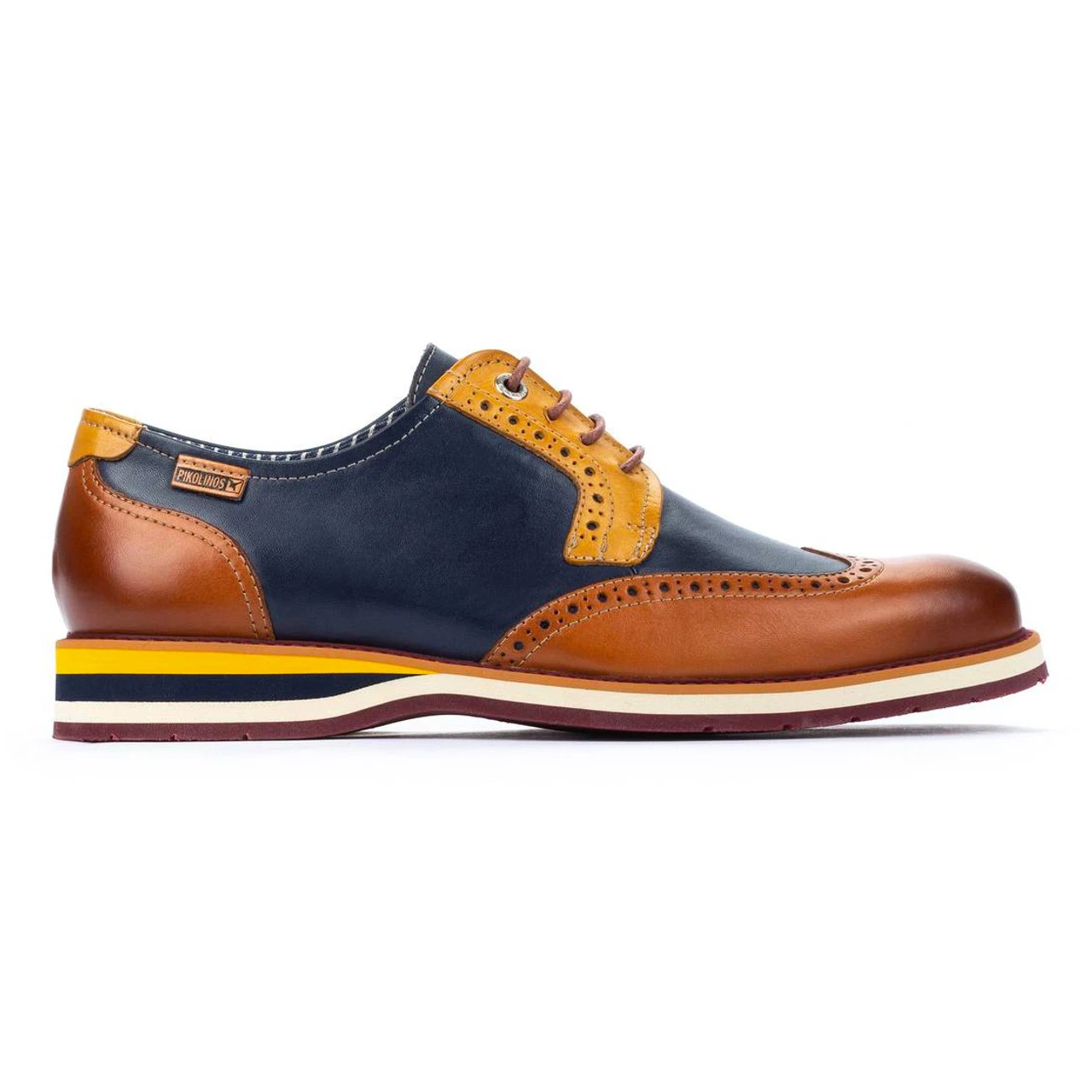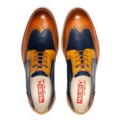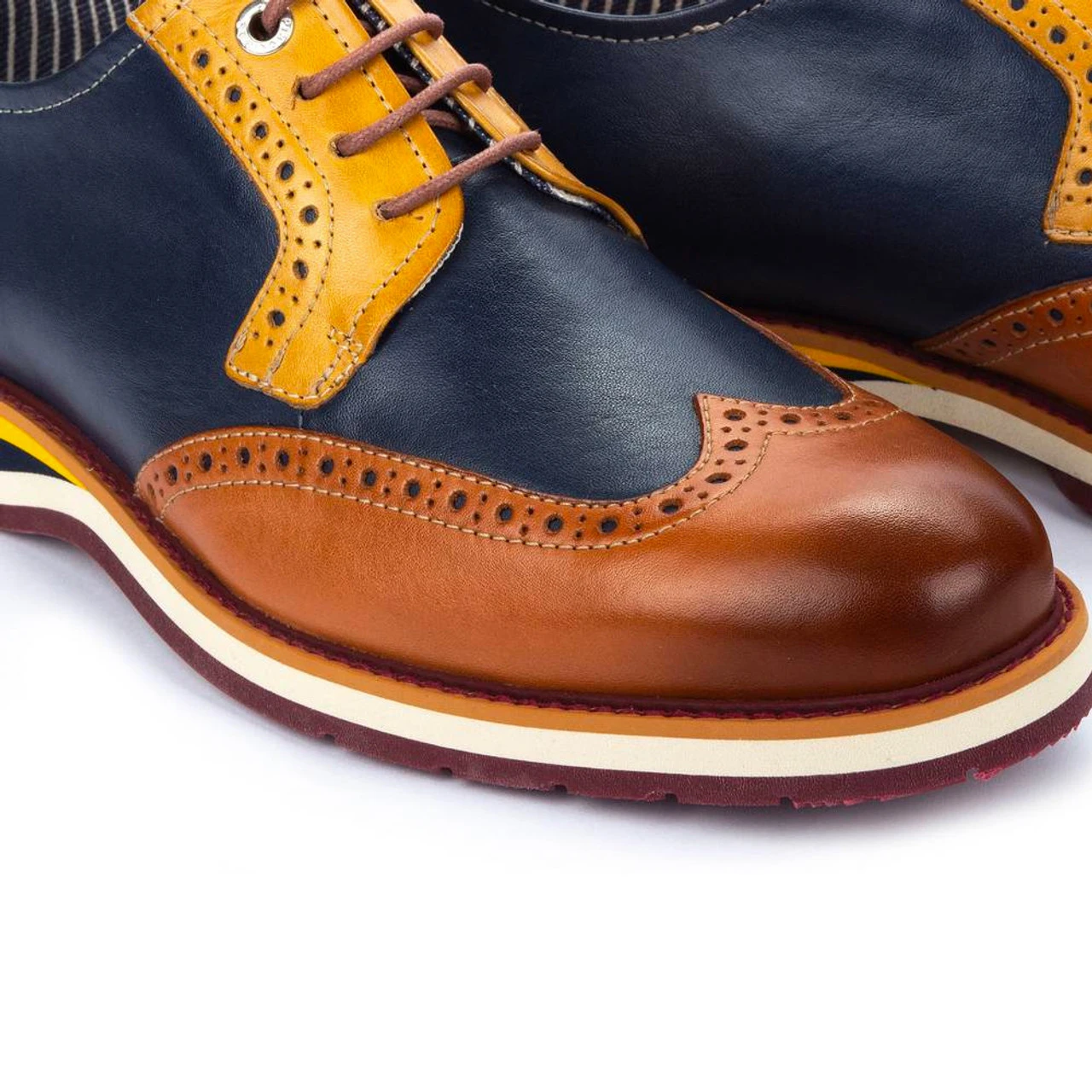 The men’s Arona M5R wingtip oxford by Pikolinos features colorful leather uppers, a traditional lace closure, and removable insoles.