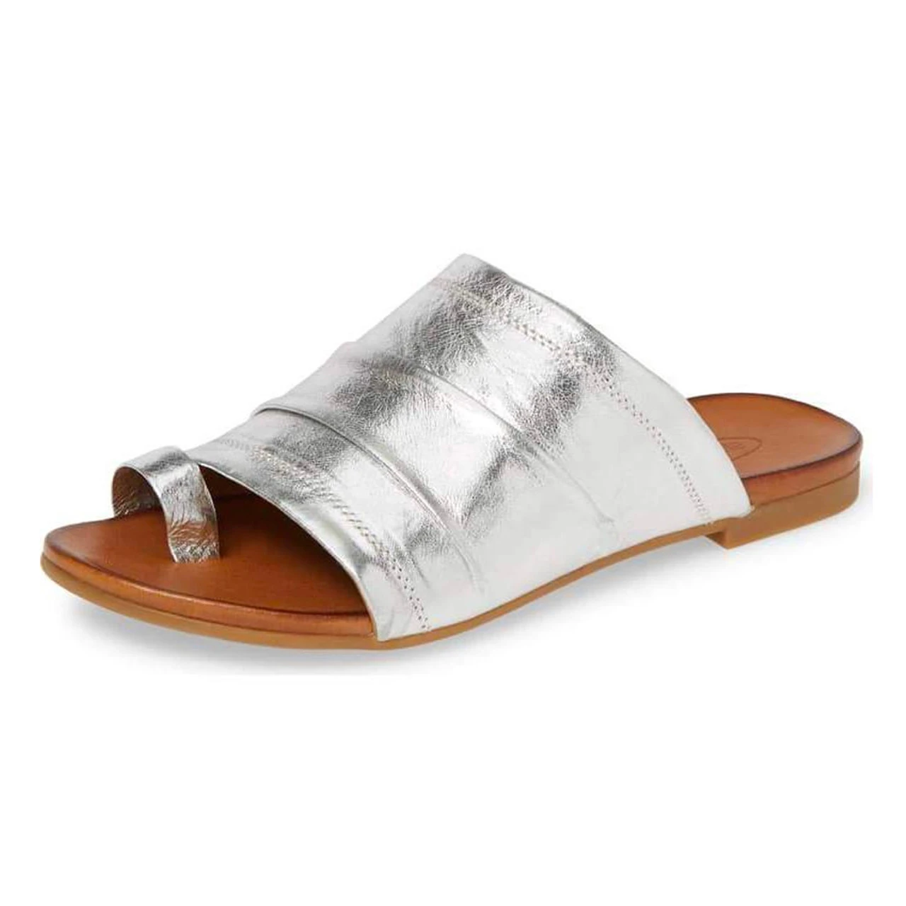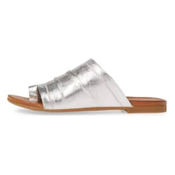 - Flat, slip-on sandal