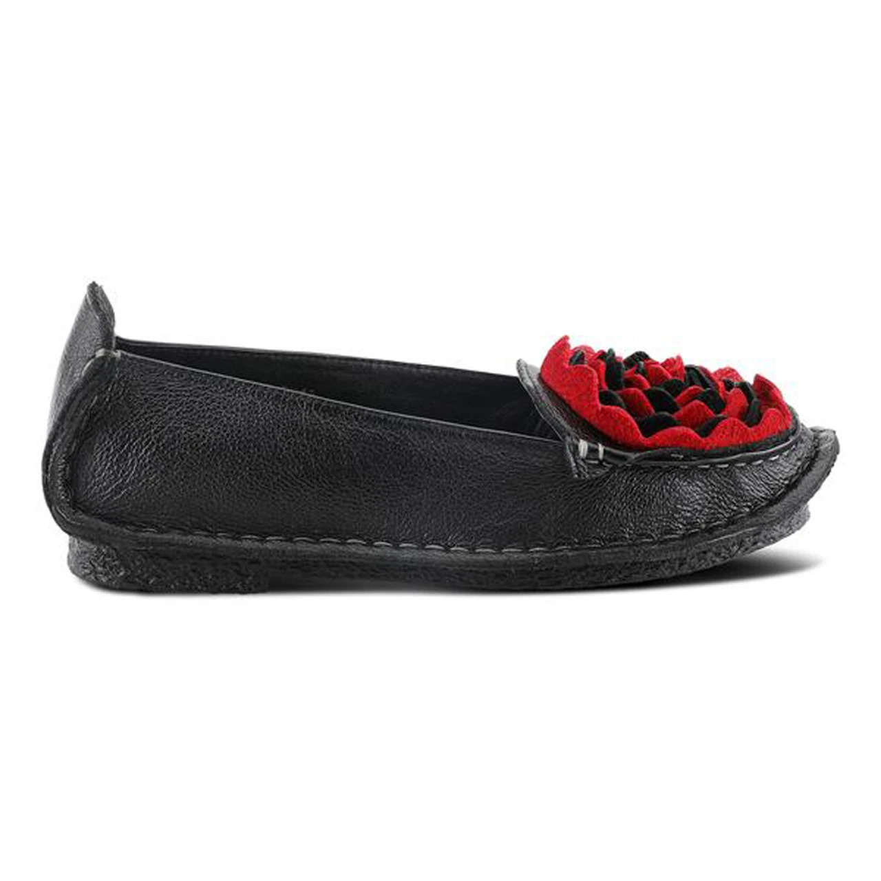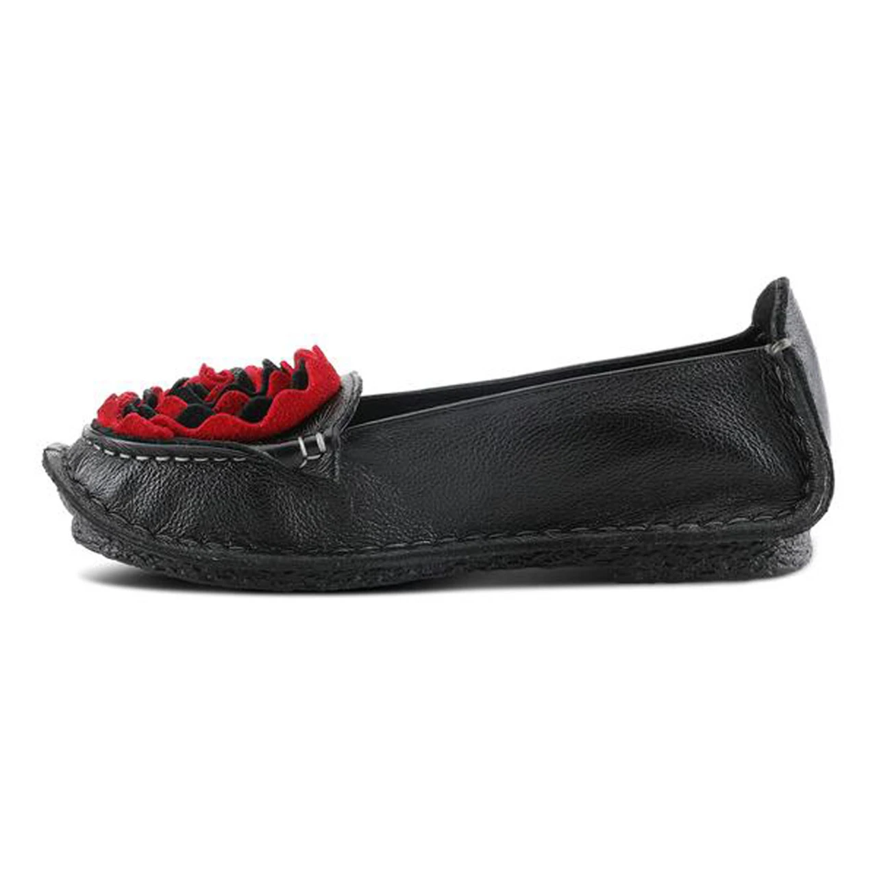 - Round toe, hand painted ombre leather, soft leather flower