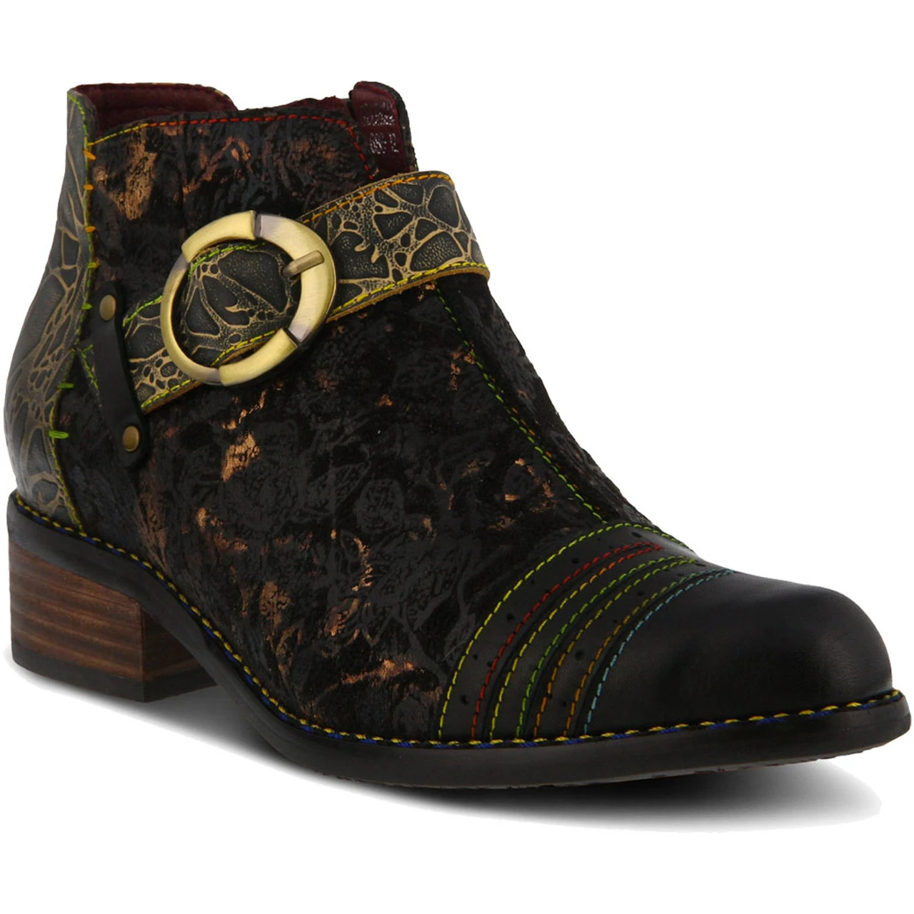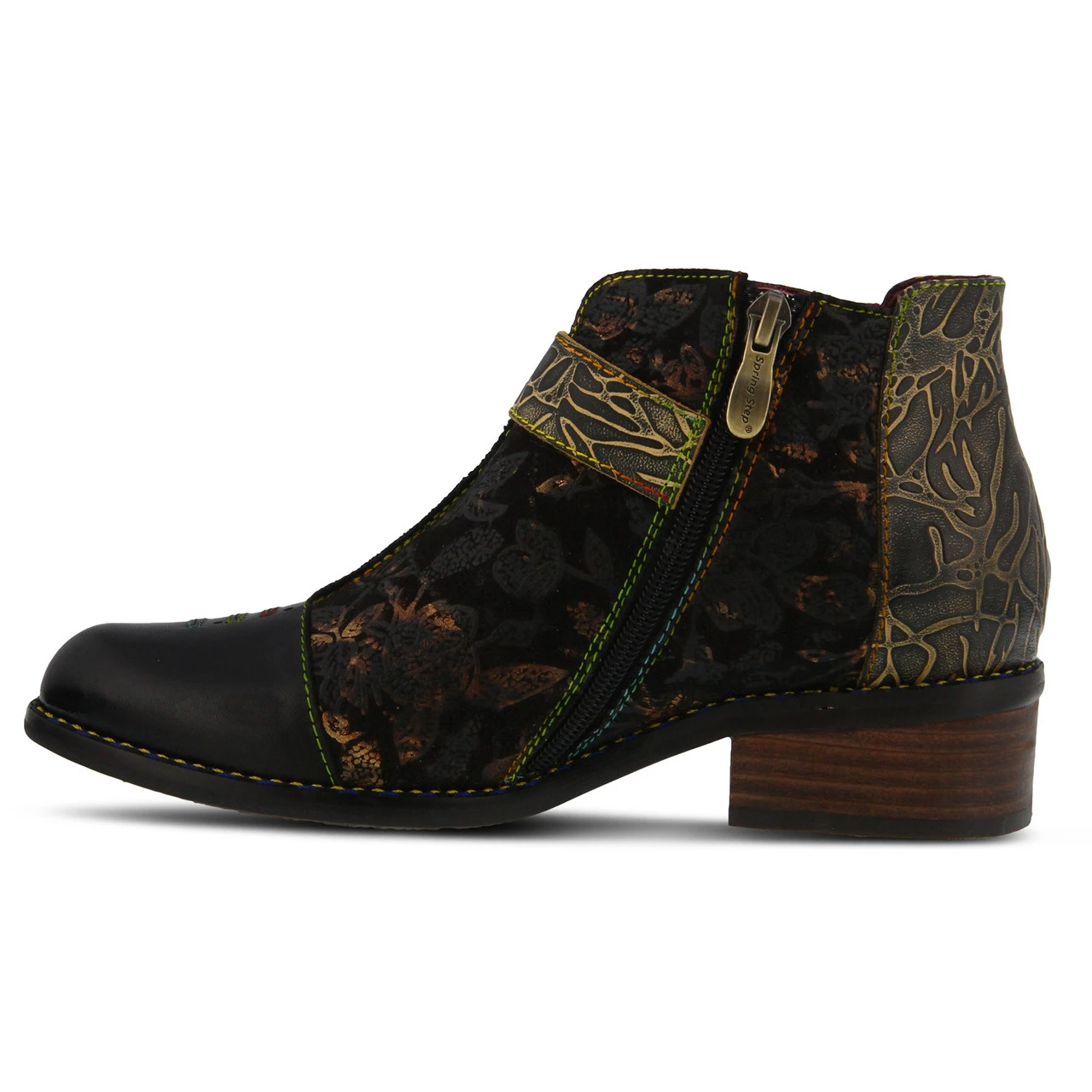 Classic Western style is merged with contemporary style in the Women’s Georgiana Bootie by Spring Step. This stunning boot features a sleek, stacked heel, zip closure, and premium leather upper with metal hardware.