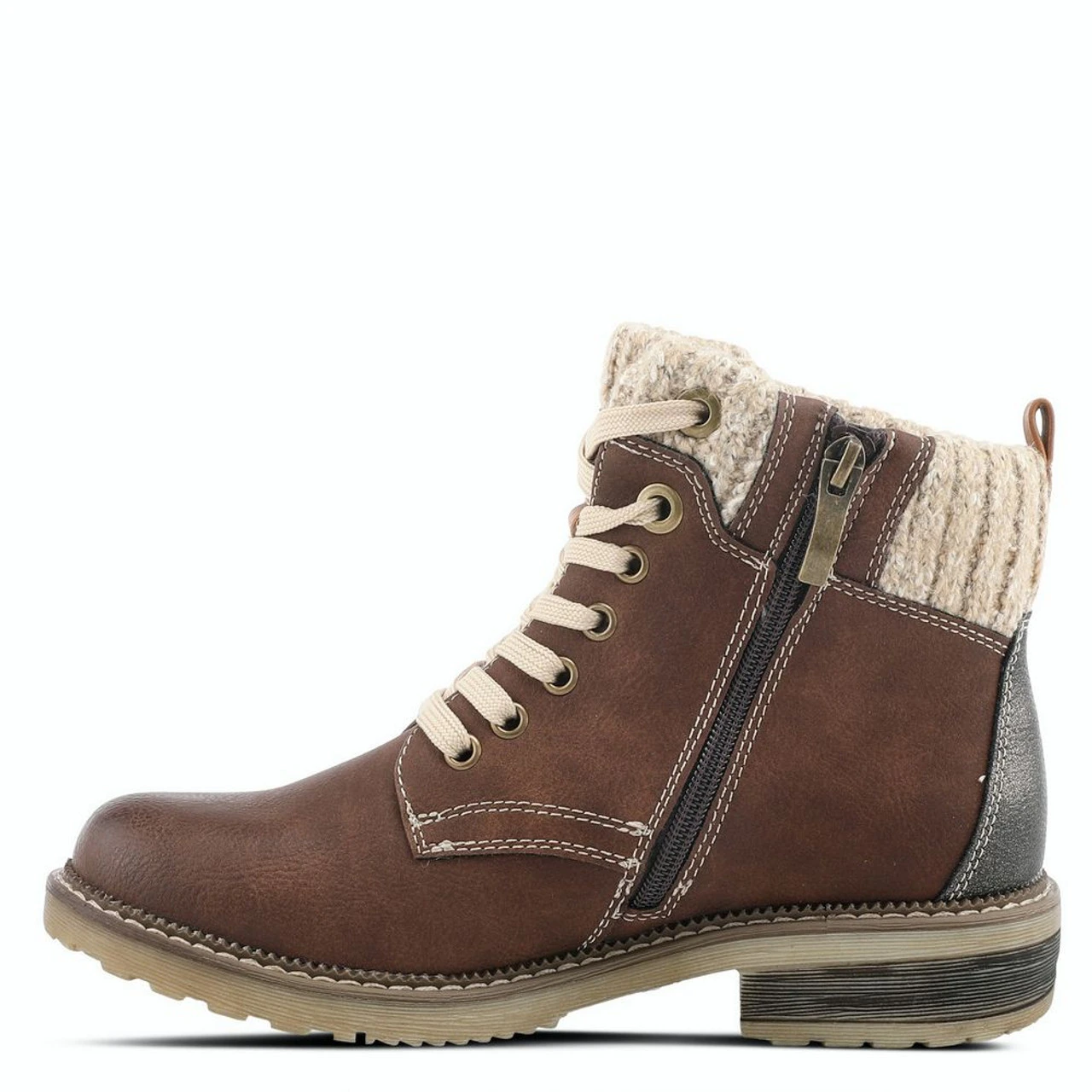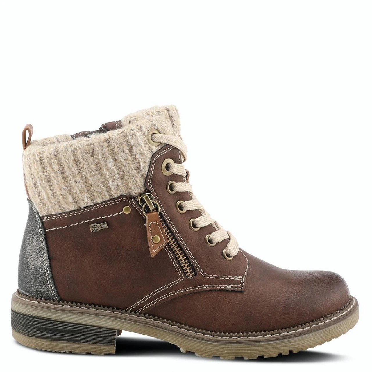 Experience the comfort revolution in this water resistant manmade leather pull-on lace-up bootie featuring a decorative lateral zipper design and an easy on/off full length inside zipper all on a chunky and sculpted heel.