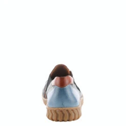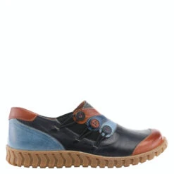 Premium, high-quality leather shoe featuring striking color blocking and unique colorful buttons on a flexible comfort sole.