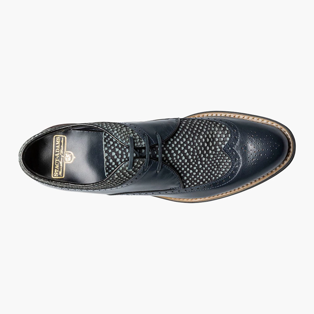 The Stacy Adams Dayton Python Print Wingtip Oxford features a soft kidskin leather upper with eye-catching python print suede. Along with its versatile style, it also has the comfort of breathable leather linings and a fully cushioned pigskin covered footbed.