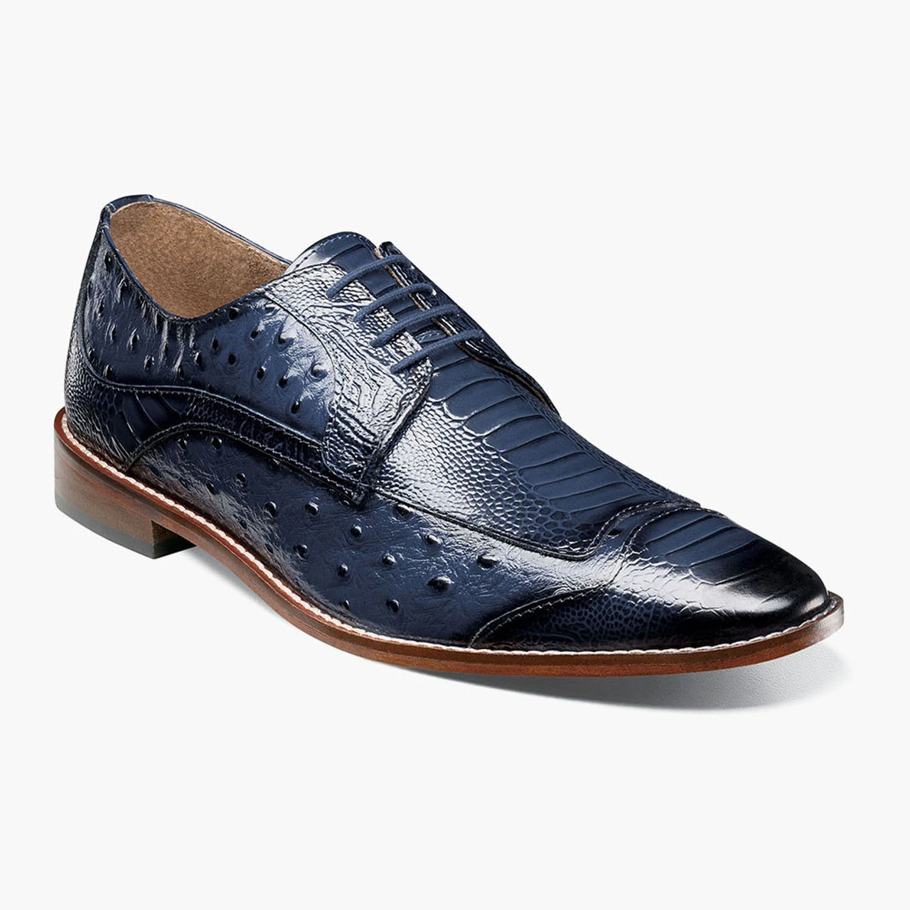 For the man who is not afraid to take center stage, the Fanelli features an ostrich leg print and quill print leather upper. Worn with a suit or jeans, the Fanelli is guaranteed to turn heads wherever you go.