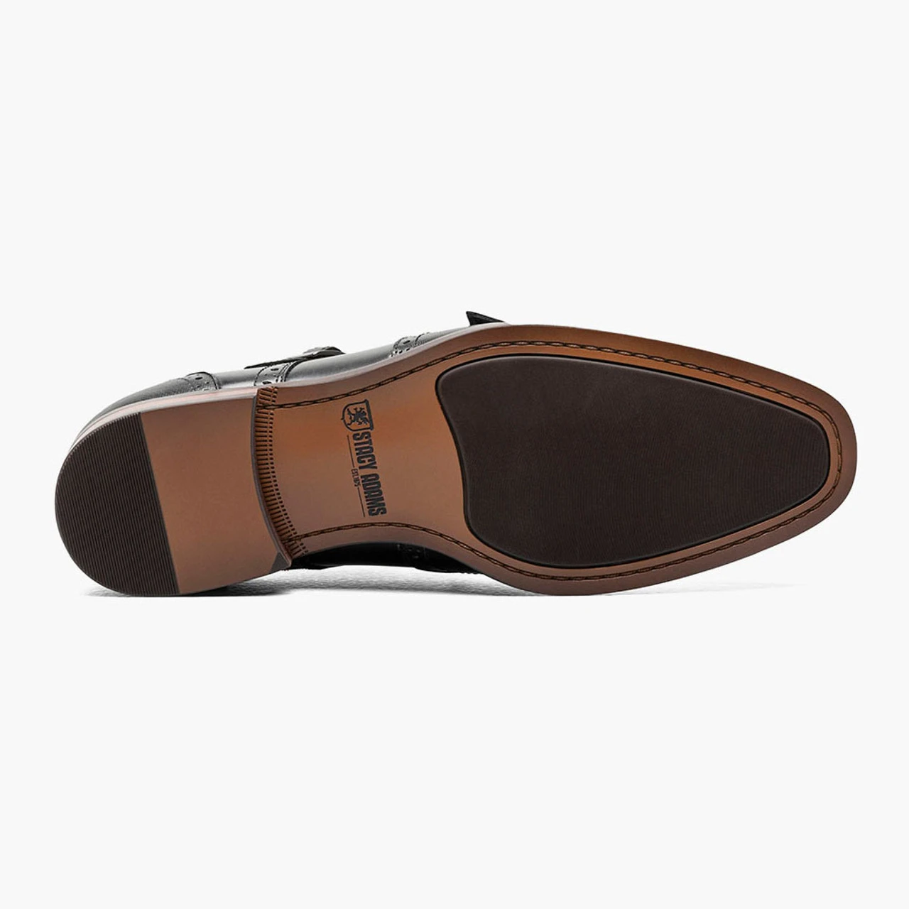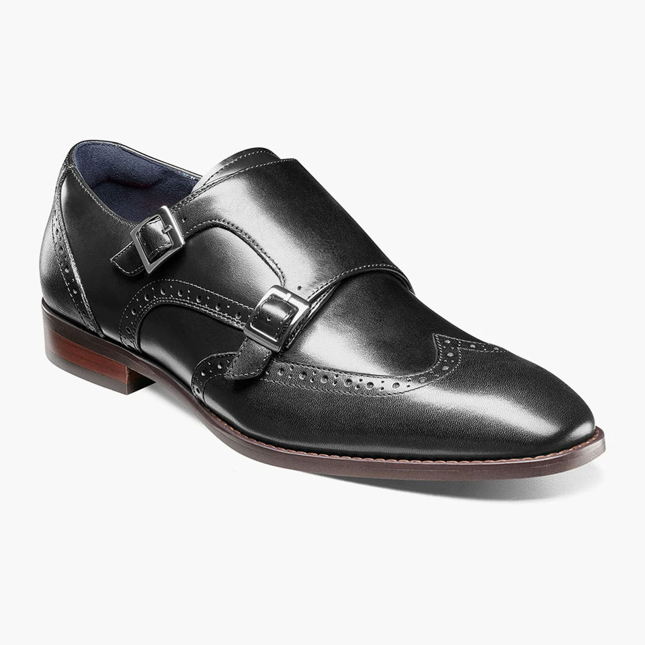 A double monk strap with a difference, the Stacy Adams Karson Wingtip Double Monk Strap features a perfed wingtip and a modern stacked heel.