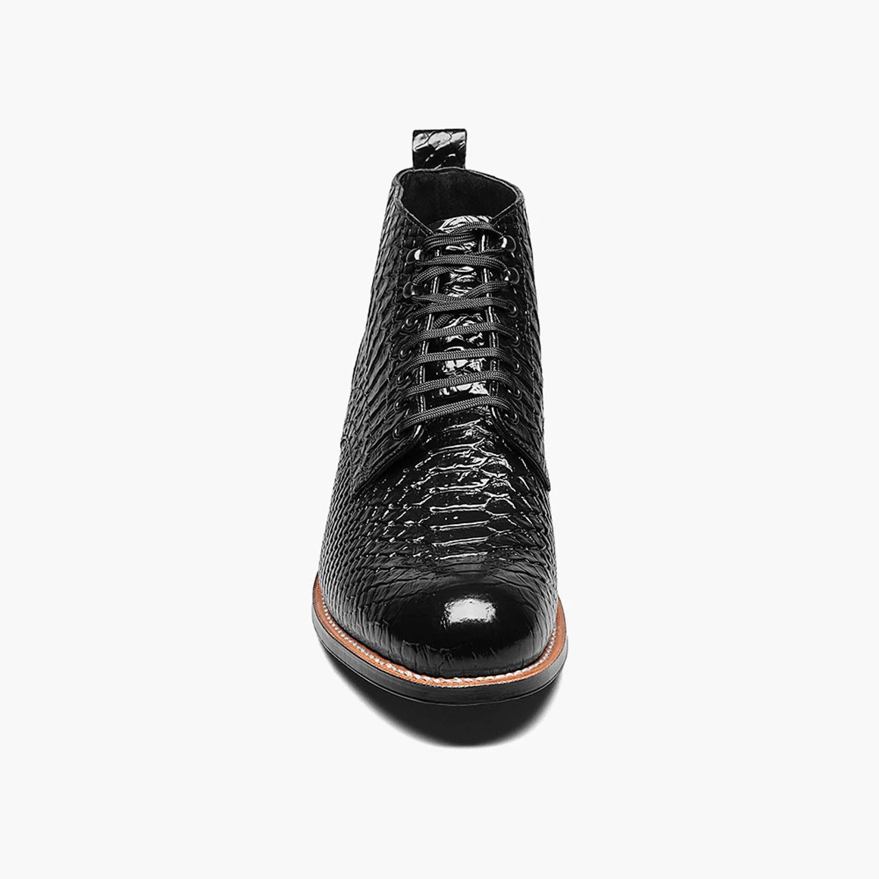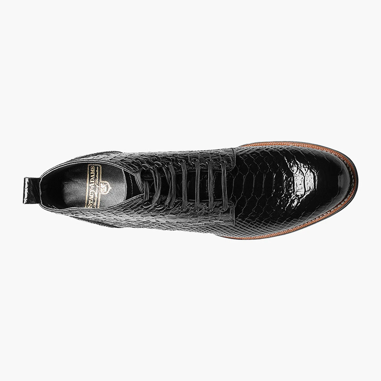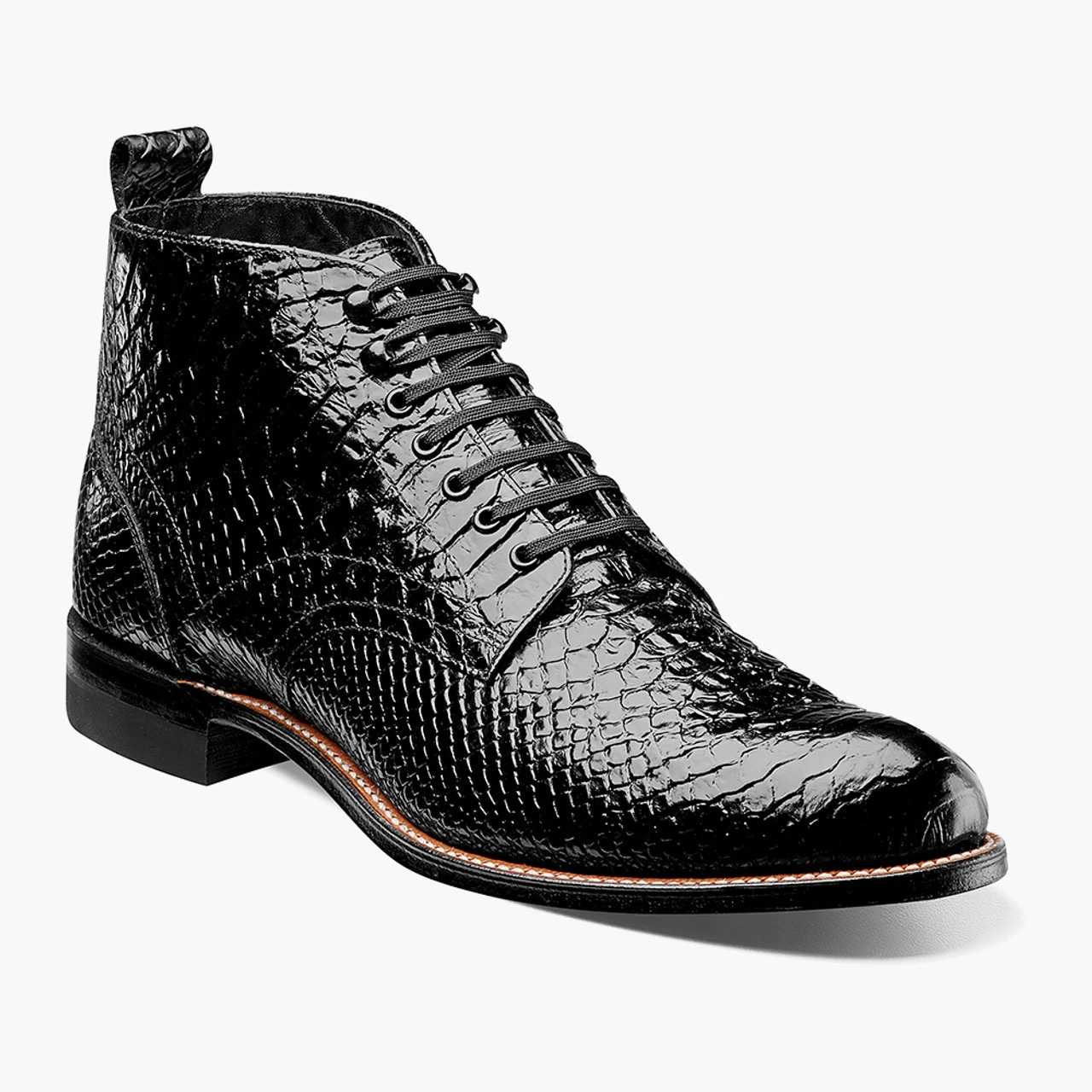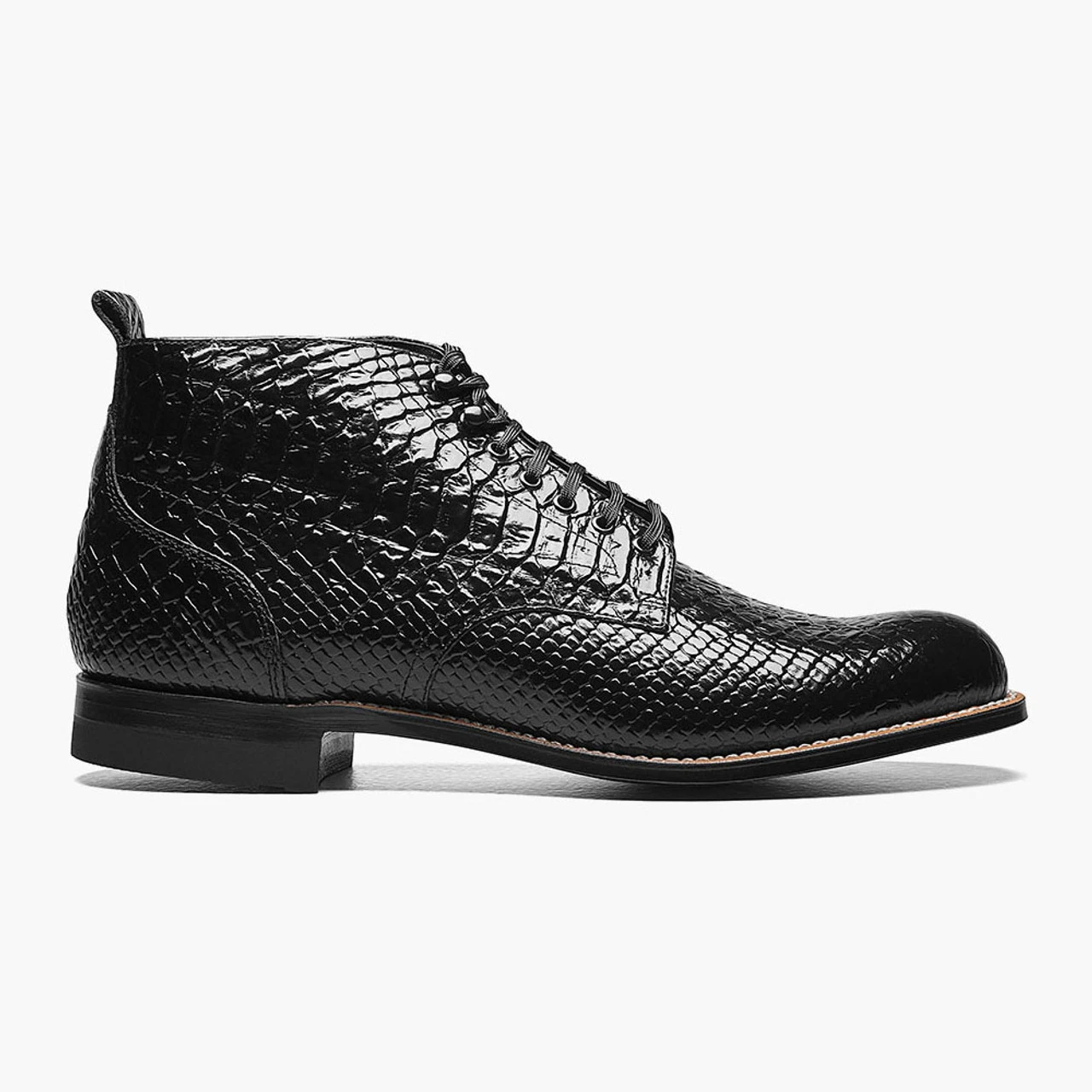 Genuine welt construction, leather sole, and soft kidskin linings are second to none. But it’s the head-turning anaconda print leather upper that makes the Stacy Adams Madison Plain Toe Boot a rare breed of boot.