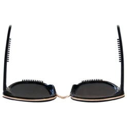 - Frame & Lens: Black frames with gold metal inlays with smoke lens and black temples