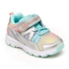 A colorful sporty design comes equipped with premium comfort and performance features, like memory foam insoles, anti-odor linings and extra grippy rubber outsoles, all in a cartwheel-worthy machine washable construction.