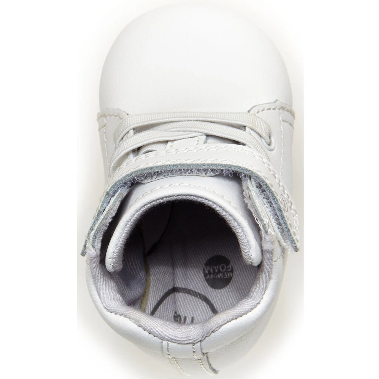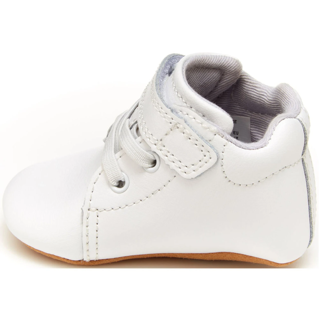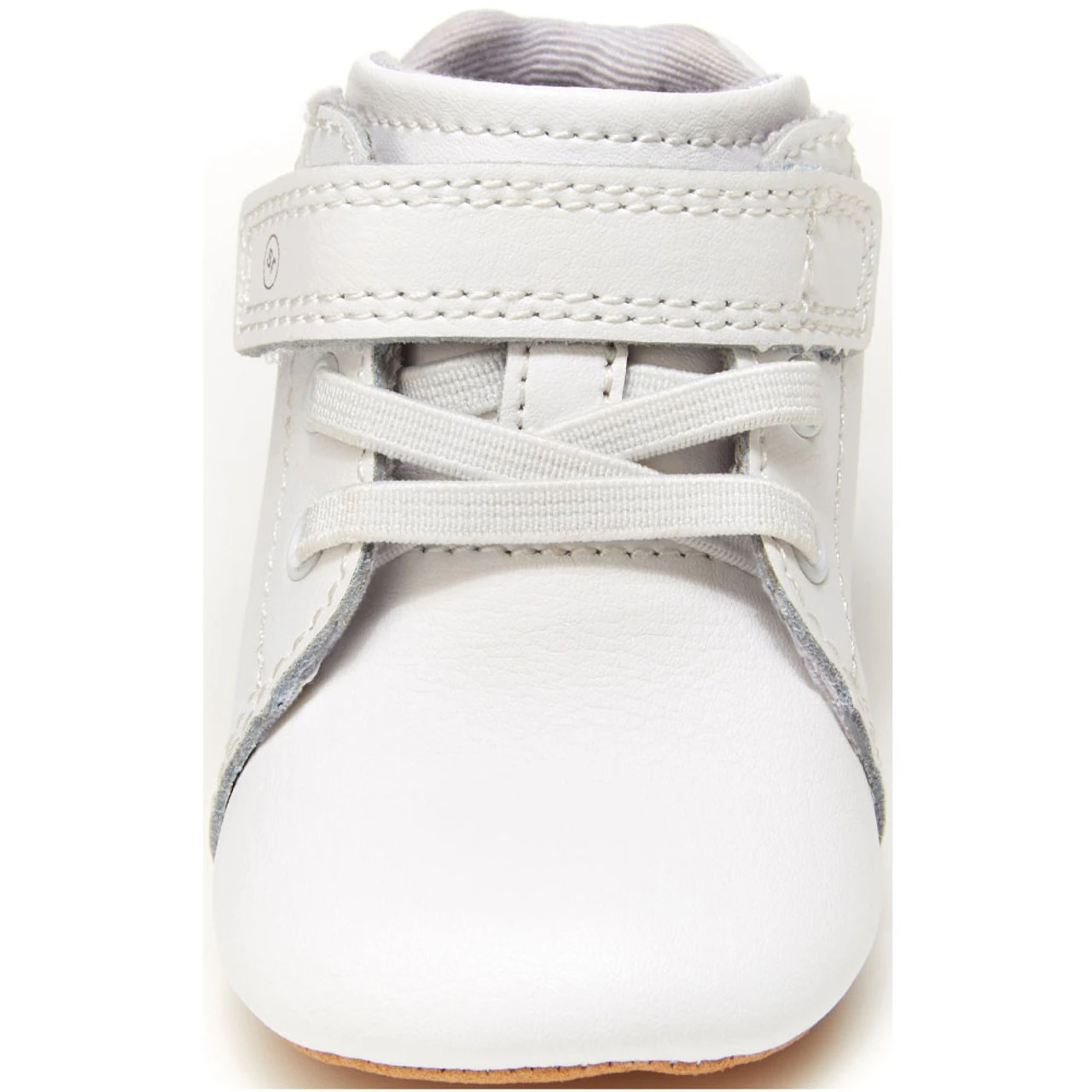 Stride Rite’s classic Elliot baby shoe features a premium leather upper with faux lace-up detail. The lightweight construction keeps him calm and comfy, while the oversized opening makes changing fuss-free.