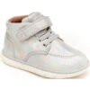 - Baby boy’s and girl’s sneaker made with leather and textile featuring hook and loop strap closure
