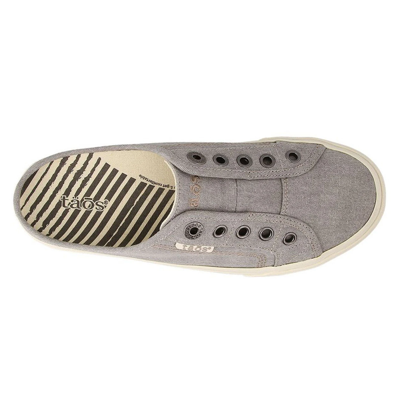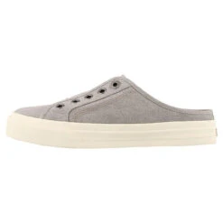 - Casual washed canvas sneakers with easy-on/easy-off laceless mule design.