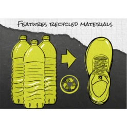 - Secure and breathable upper features made of a recycled engineered mesh (three 16 oz. plastic water bottles per pair)