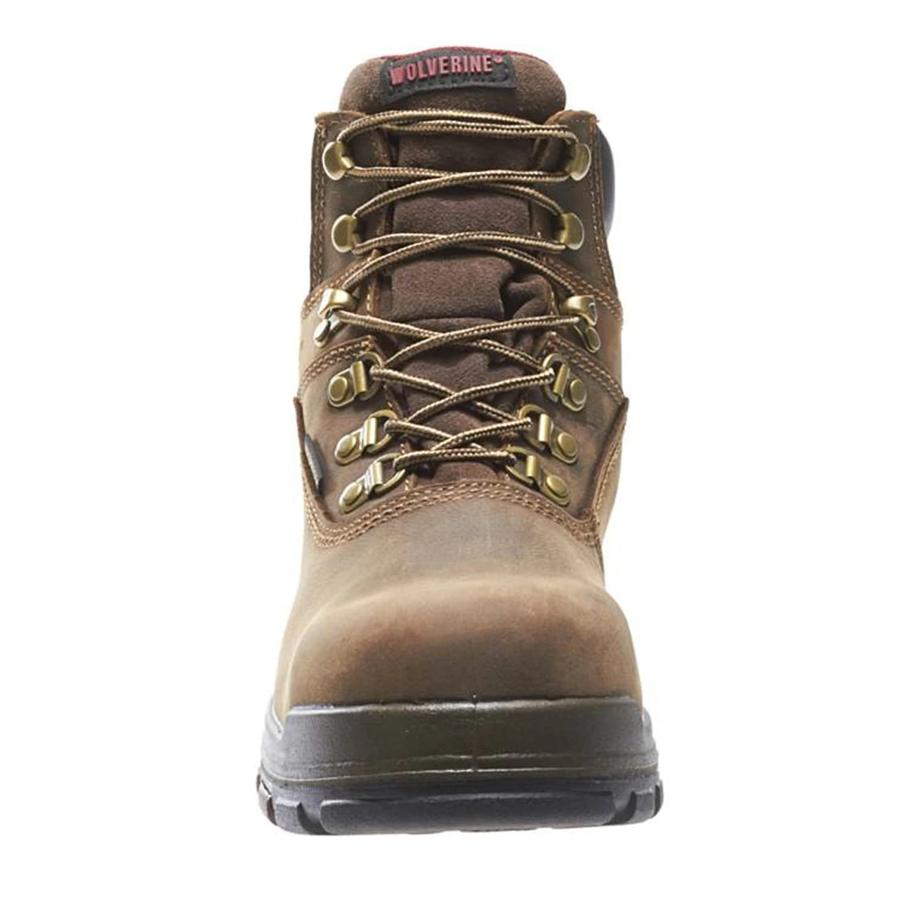 The durable Wolverine Cabor EPX workboot has a slip-resistant outsole, waterproof uppers, and Dual density polyurethane EPX™ anti-fatique footbed for all-day comfort.